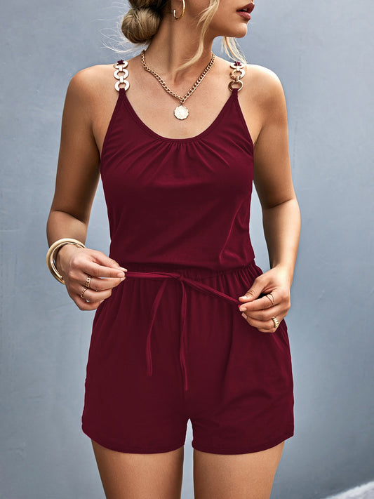 Tie Belt Spaghetti Strap Slit Jumpsuit